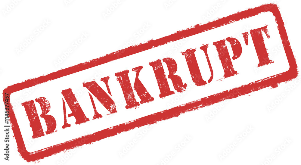 Obraz na plátně Red bankrupt rubber stamp with vintage, grunge and misprinted-like texture with skew angle