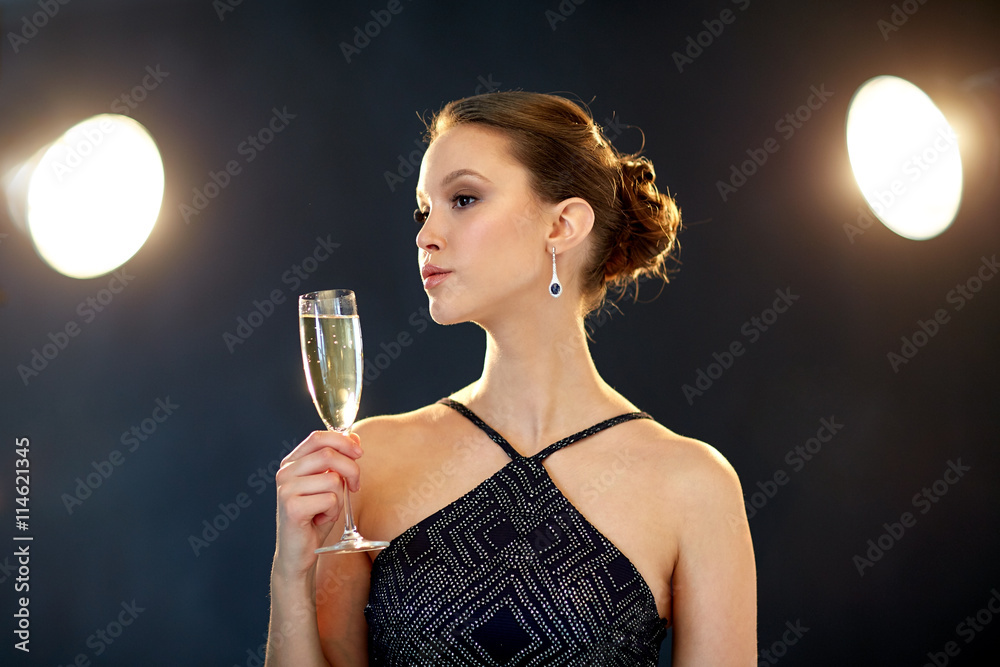 Obraz na plátně young asian woman drinking champagne at party