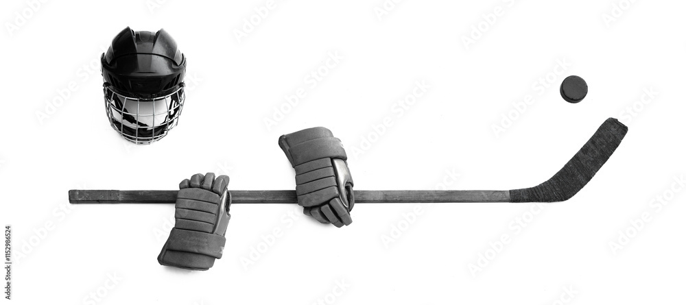 Obraz na plátně old hockey stick and hockey helmet isolated on white background