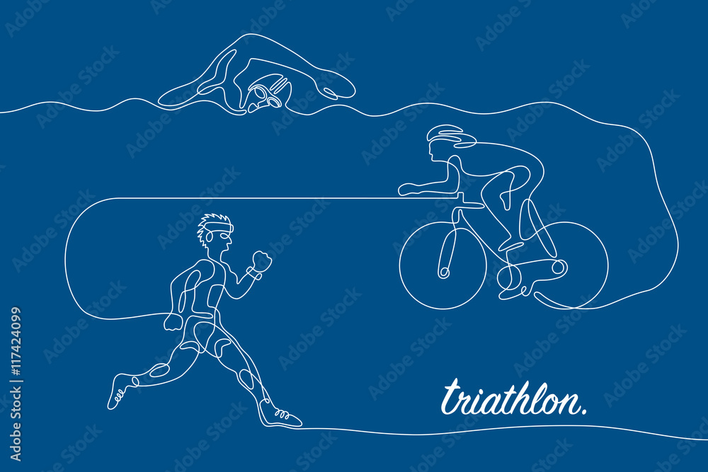 Obraz na plátně Triathlon graphic using single line to design and form the shape of triathletes are swimming running and cycling