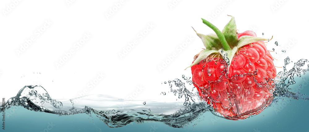 Obraz na plátně Raspberries in a spray of water.