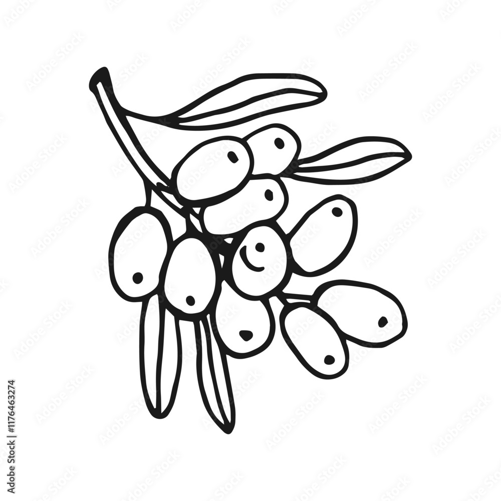 Obraz na plátně Sea buckthorn hand drawn vector illustration