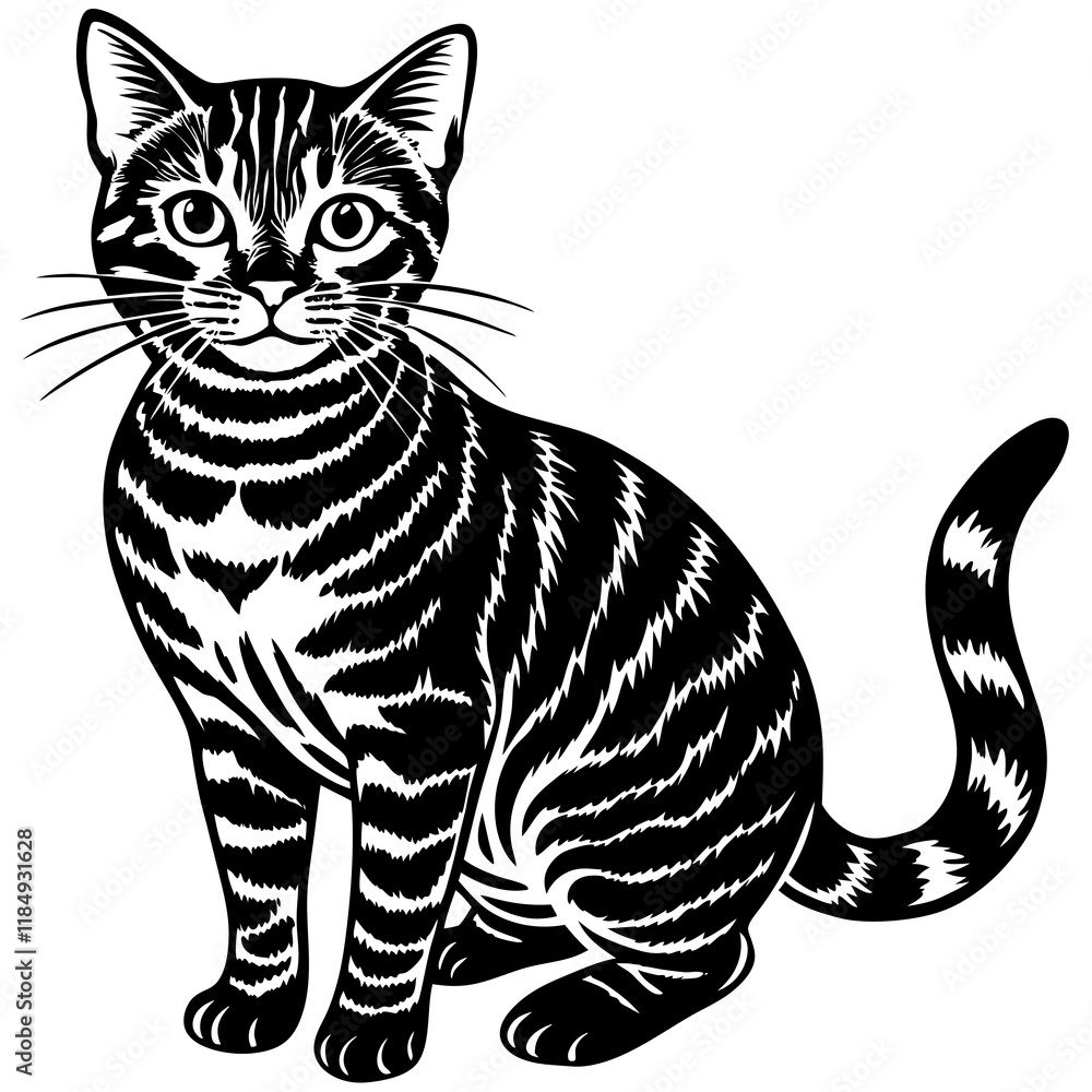 Obraz na plátně american shorthair cat black silhouette vector with white background, Pet animal