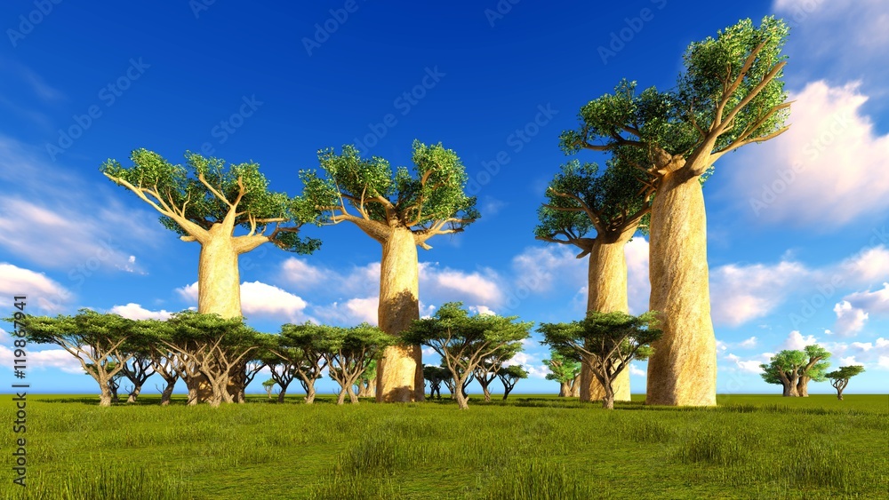 Obraz na plátně 3d illustration of the elephant walking near baobab trees
