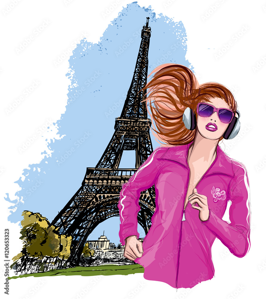 Obraz na plátně Pretty blonde woman jogging in paris