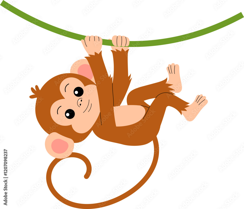 Obraz na plátně playful little monkey holding on a vine illustration