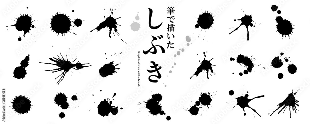 Obraz na plátně 使いやすい! 墨で描いた和風の「飛沫・スプラッシュ」素材セット(ベクターイラスト)