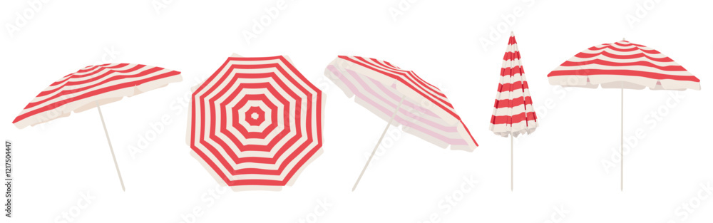 Obraz na plátně Open beach umbrella with red and white stripes