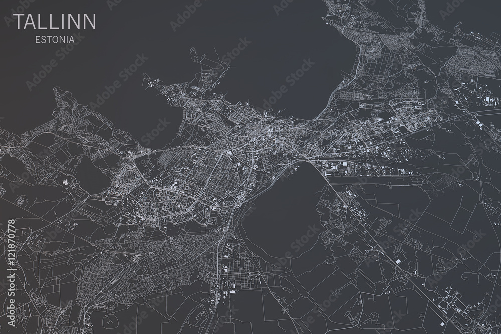 Obraz na plátně Cartina di Tallinn, vista satellitare, città, Estonia