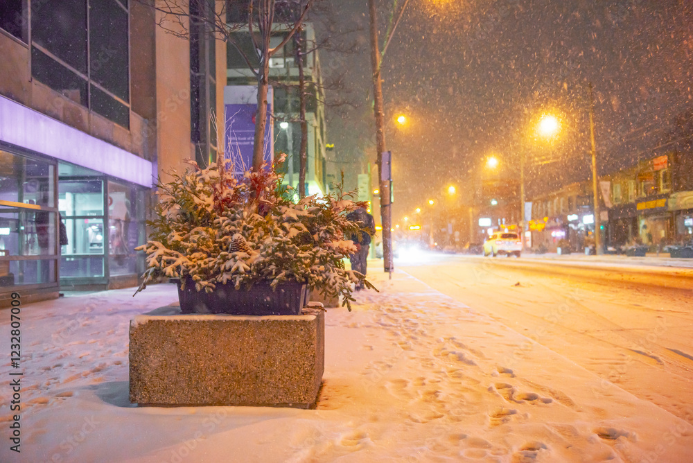 Obraz na plátně Toronto Avenue in the evening in winter when it snows
