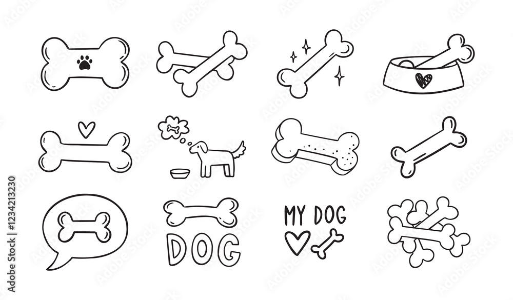 Obraz na plátně Hand drawn doodle bone for dogs set