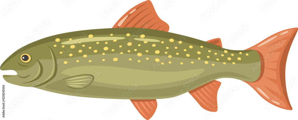 Obraz na plátně Colorful illustration of a brook trout swimming underwater, showing its fins, ta