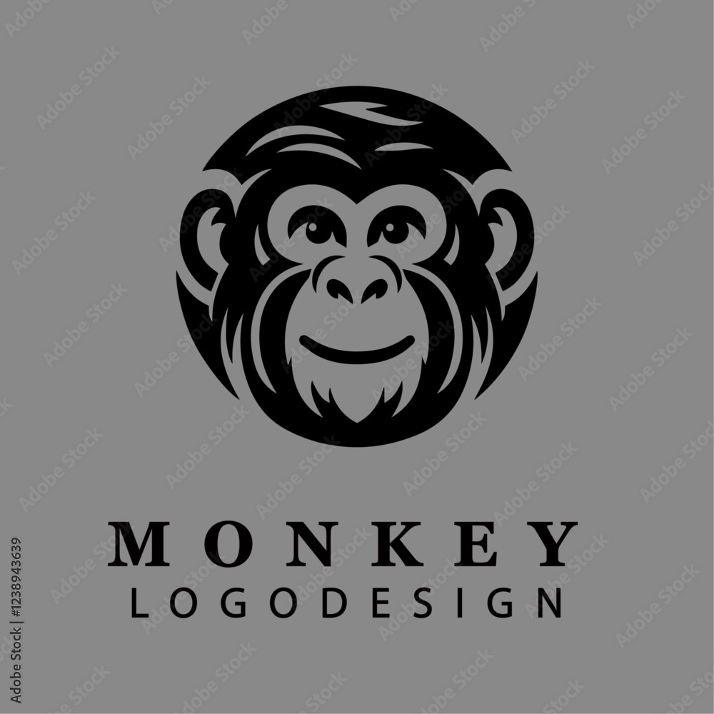 Obraz na plátně Minimalist black and white monkey face logo design vector illustration perfect f