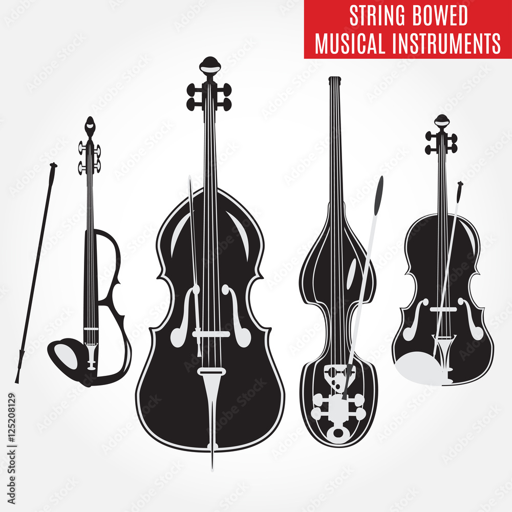 Obraz na plátně Set of black and white string bowed musical instruments, vector illustration