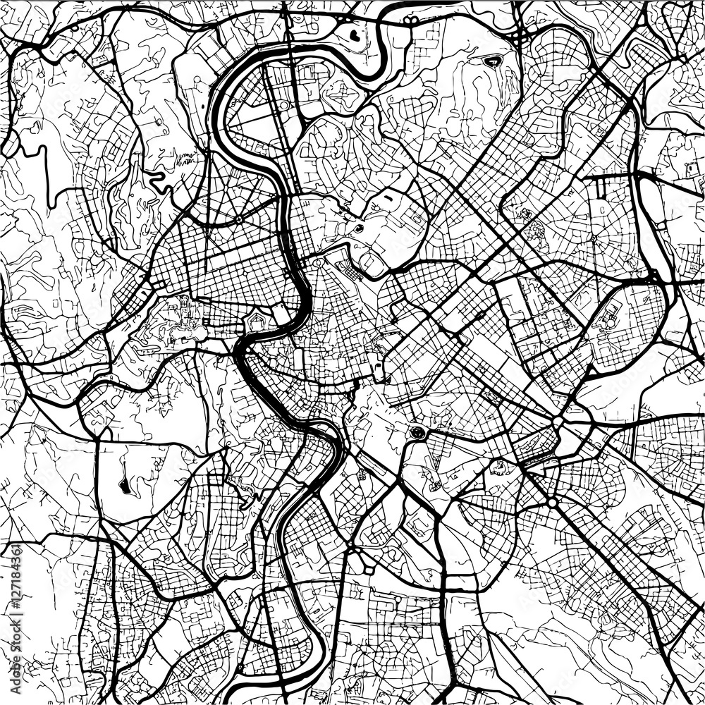 Obraz na plátně Rome, Italy, Monochrome Map Artprint