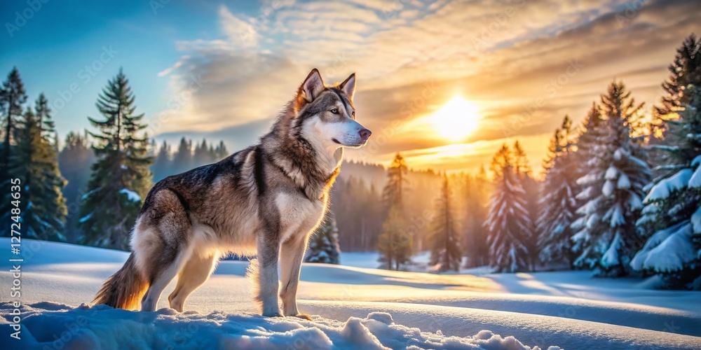 Obraz na plátně Majestic Wolfdog in Snowy Winter Landscape - Stunning Wildlife Photography