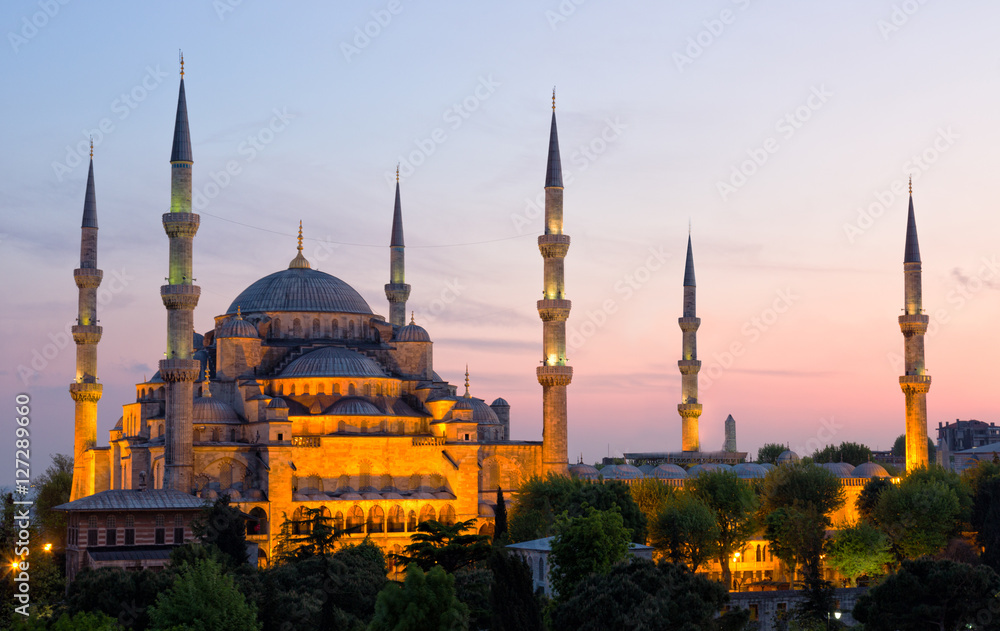 Obraz na plátně Sultan Ahmed Mosque (Blue Mosque) in Istanbul early in the morning on a sunset i