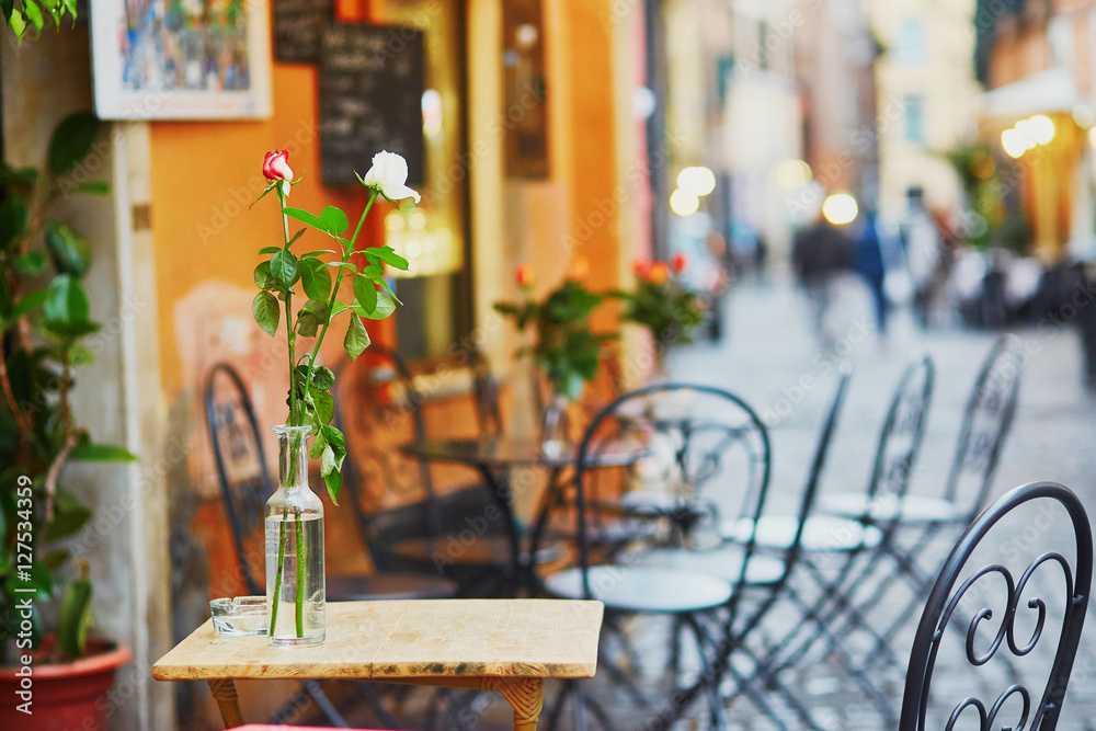 Obraz na plátně Cozy outdoor cafe in Rome, Italy