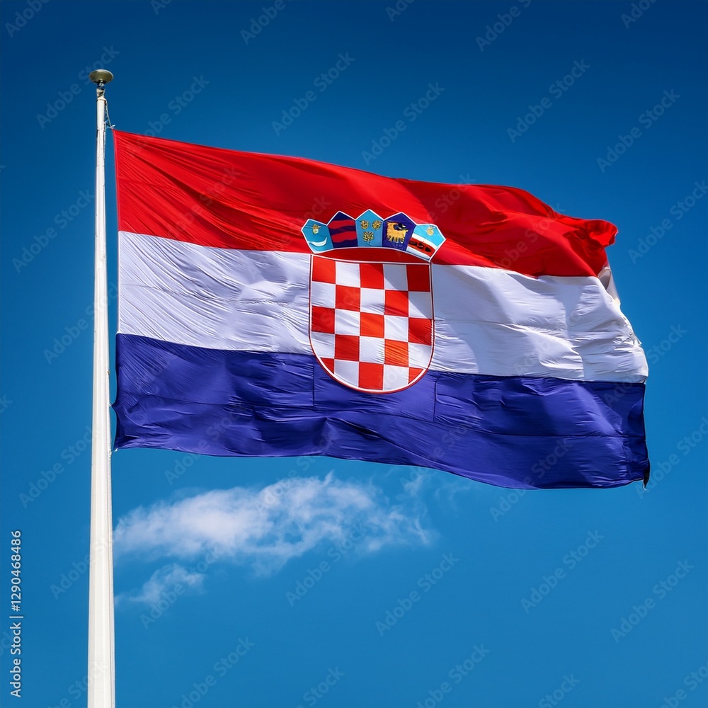 Obraz na plátně Croatia flag waving in the wind against a blue sky background