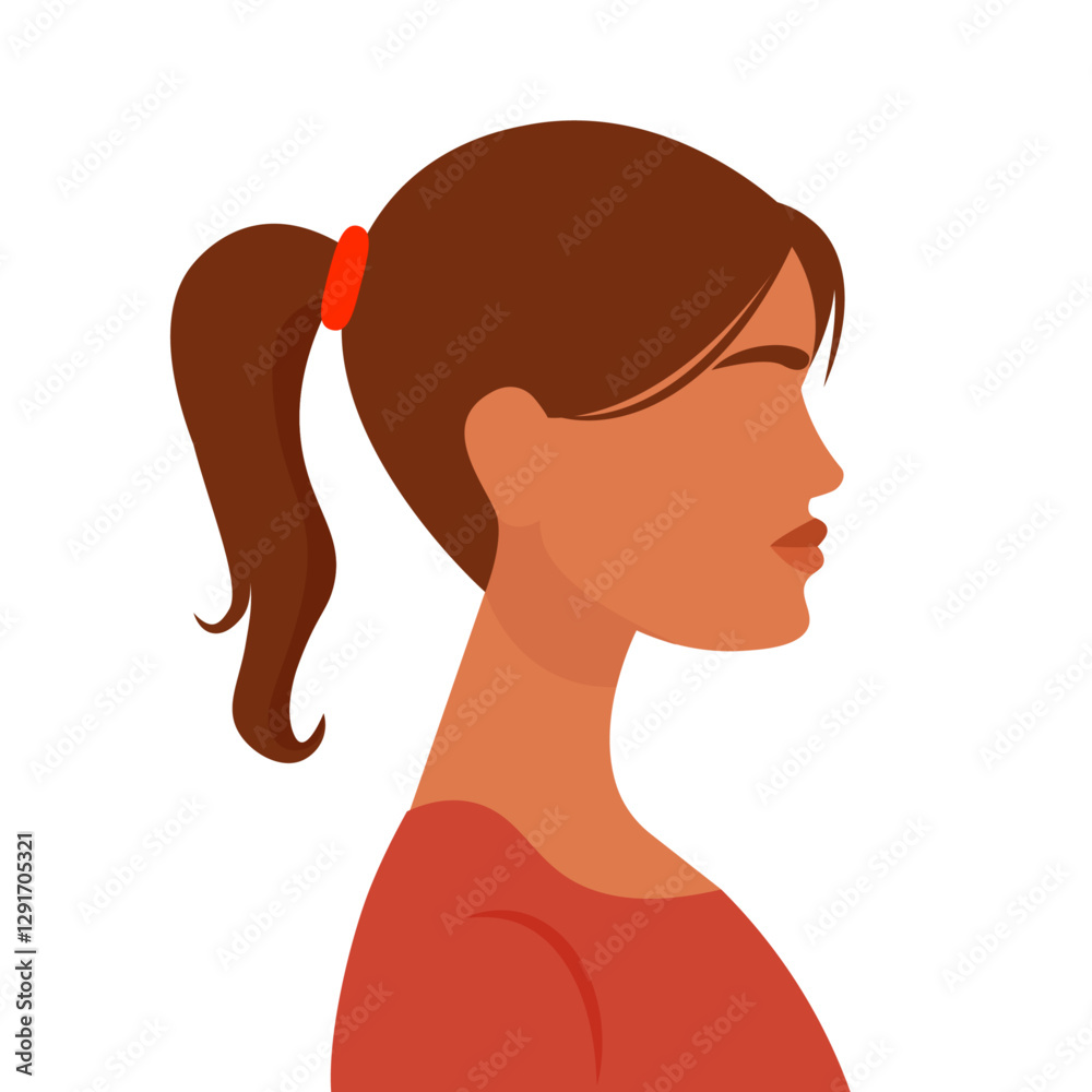 Obraz na plátně illustration of woman with ponytail hair from profile, flat style vector illustr