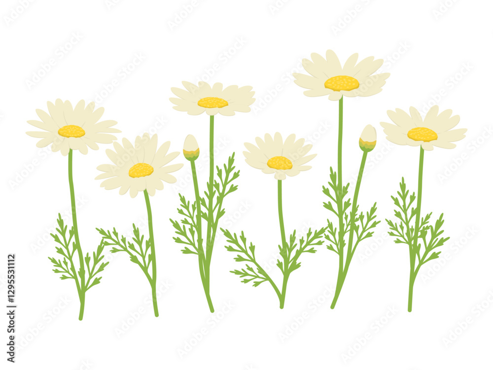 Obraz na plátně Vector illustration of white flowers of marguerites or daisies isolated on background
