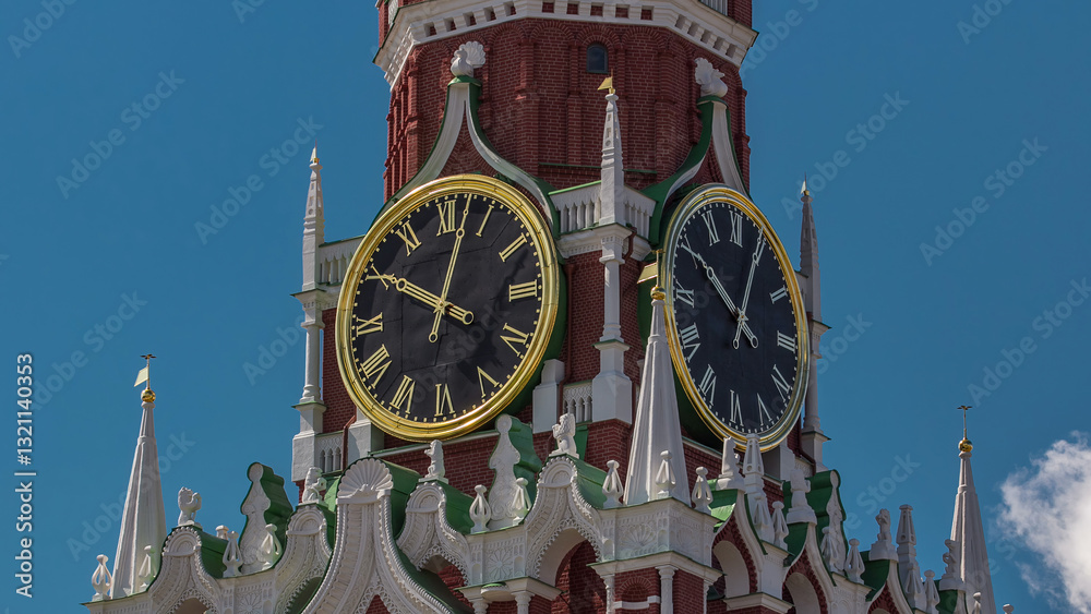 Obraz na plátně Moscow Kremlin, Spasskaya clock tower timelapse hyperlapse.