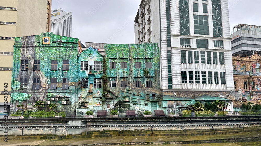 Obraz na plátně Wall murals on the buildings along the rivers of life in Kuala Lumpur, Malaysia