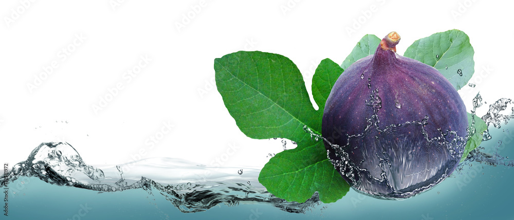 Obraz na plátně Juicy fruit figs on a background of splashing water.