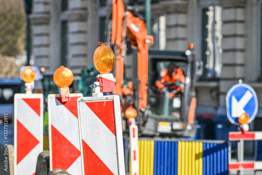 Obraz na plátně panneaux circulation travaux voirie Belgique Bruxelles
