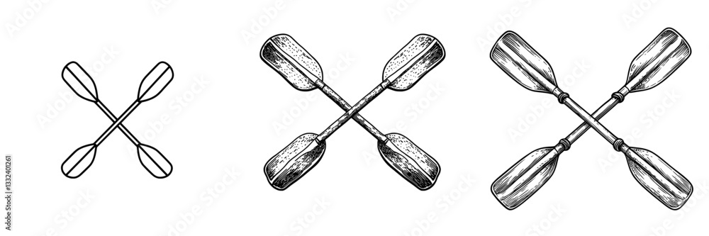 Obraz na plátně Modern art featuring oars is presented in a hand drawn engraving style with a bl