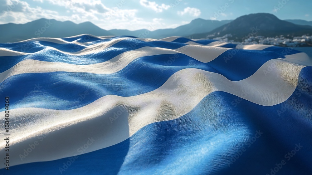 Obraz na plátně Greek Flag Waving with Coastal Background.