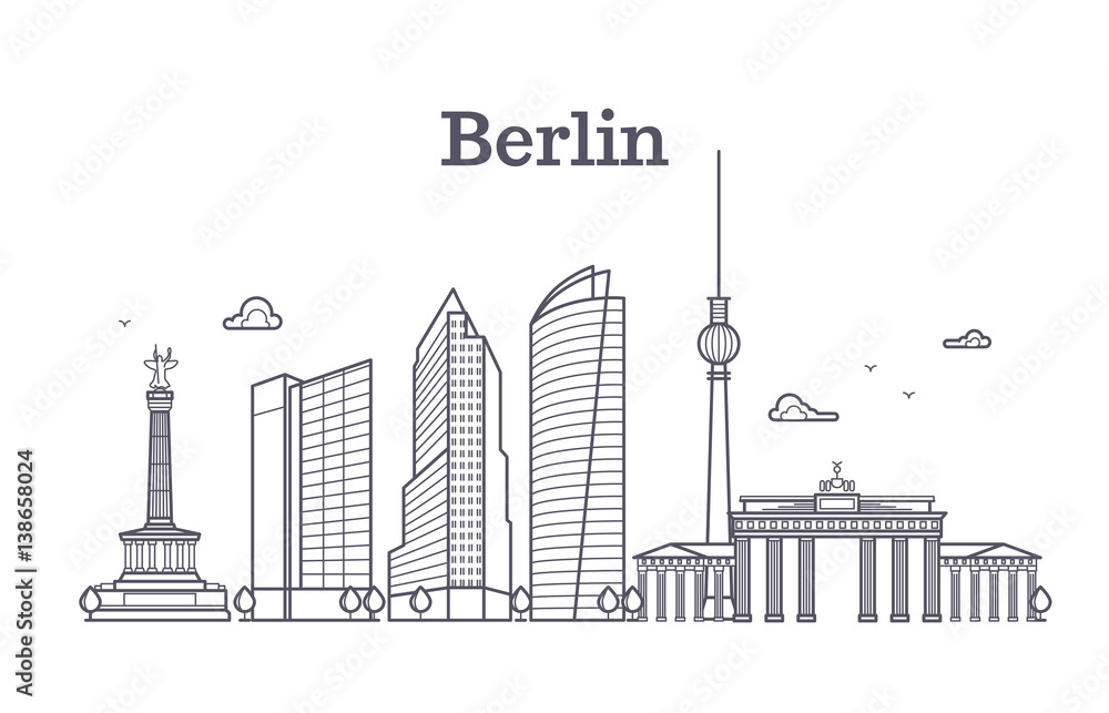 Obraz na plátně Germany berlin line vector landscape, city panoramic houses