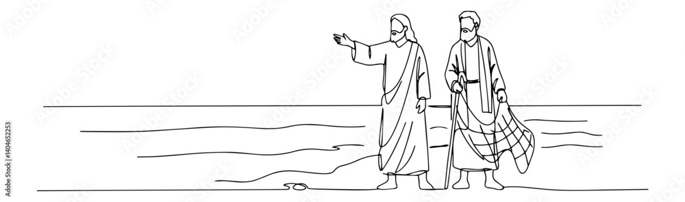Obraz na plátně jesus calling the fishermen linear vector artwork