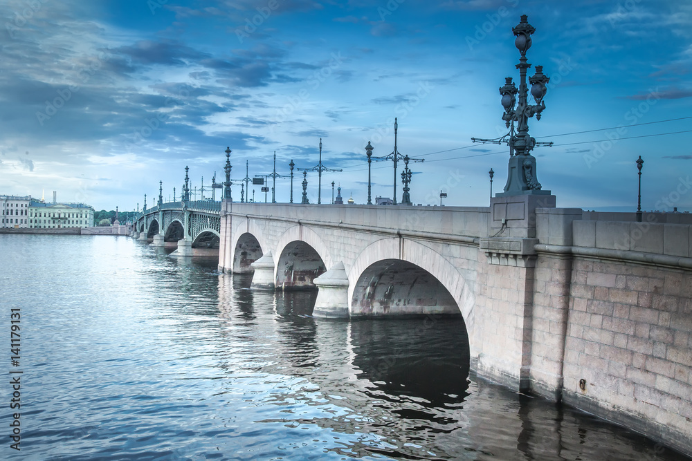 Obraz na plátně Stone bridge over the river. Trinity Bridge. St. Petersburg.