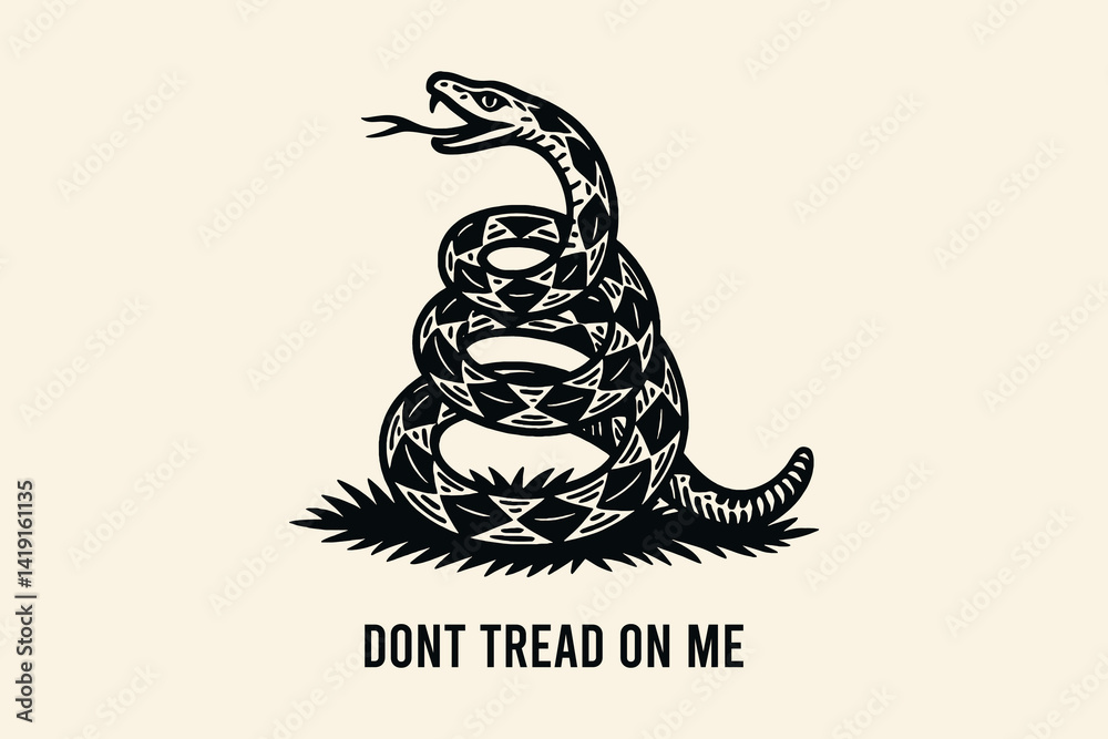 Obraz na plátně Engraved rattlesnake with “Don't Tread On Me” in vintage style vector illustrati