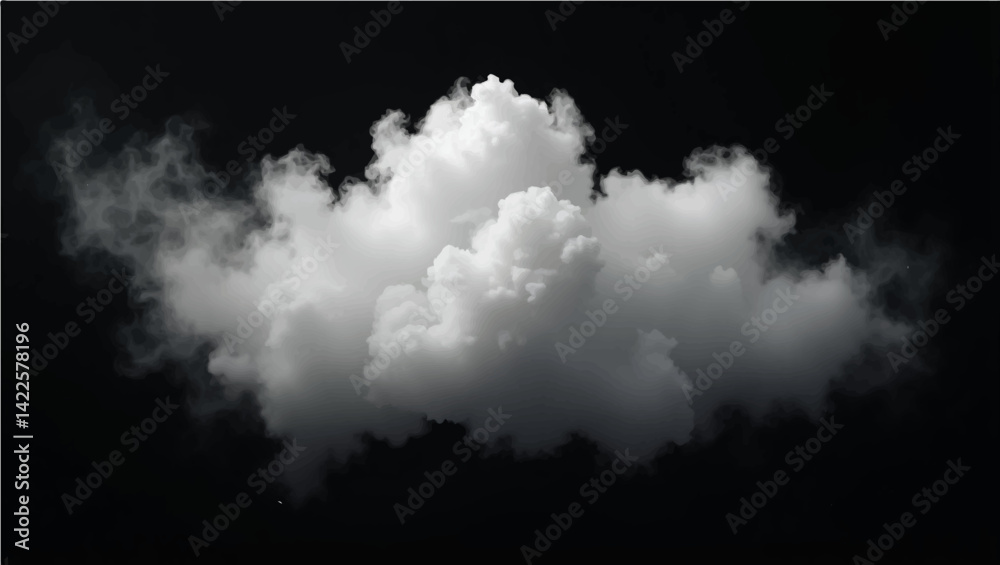 Obraz na plátně Vector illustration of a single, white, puffy cloud centered horizontally against a solid black background