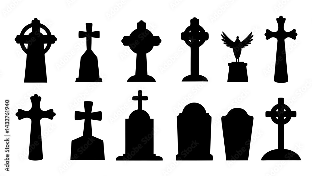 Obraz na plátně set of tombstone silhouette vector on tranparent background