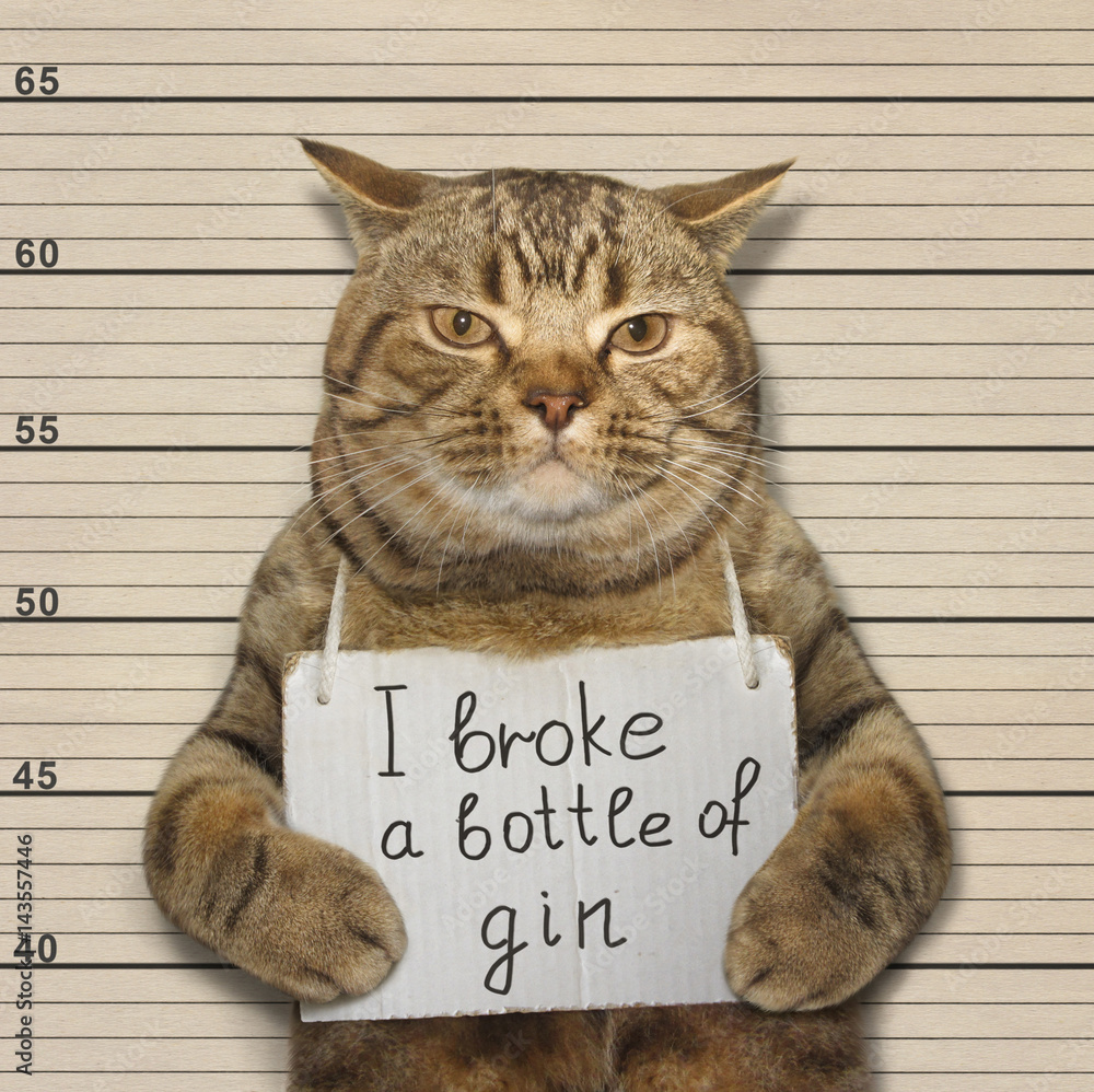 Obraz na plátně The wild cat broke a bottle of expensive gin