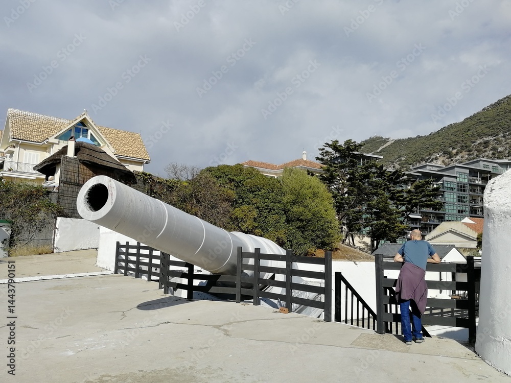 Obraz na plátně Coastal battery of giant naval cannons stationed at Gibraltar, historic military