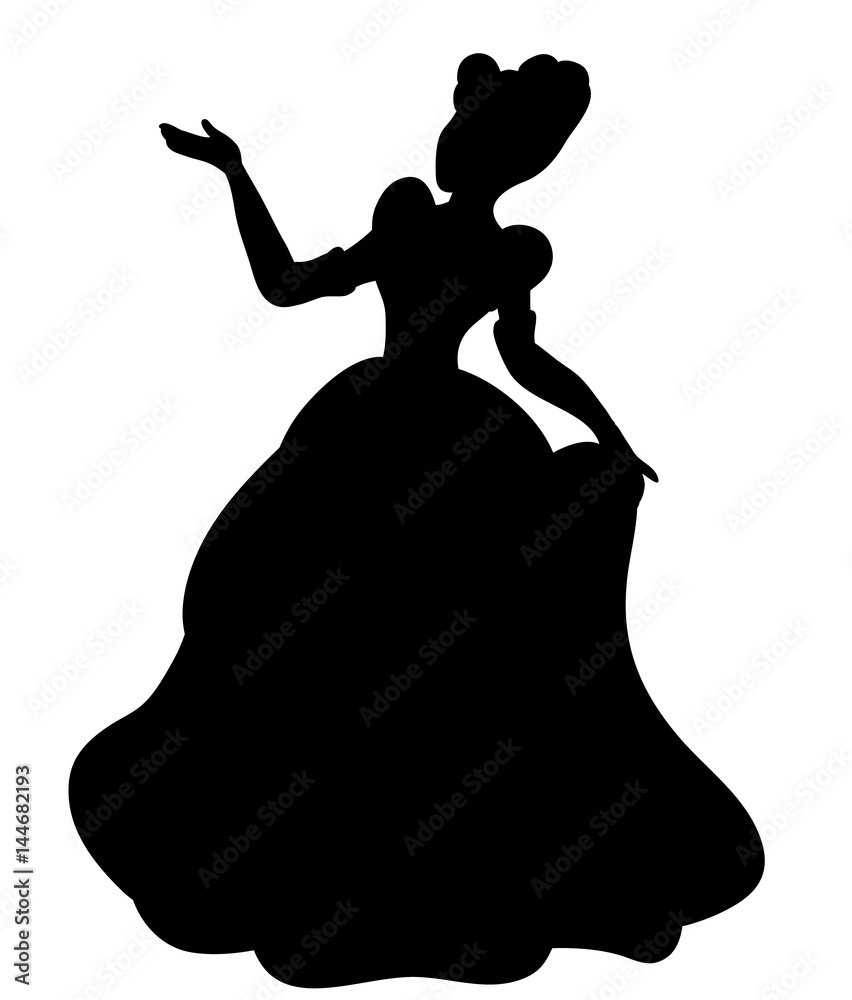 Obraz na plátně Vector, black silhouette princess illustration