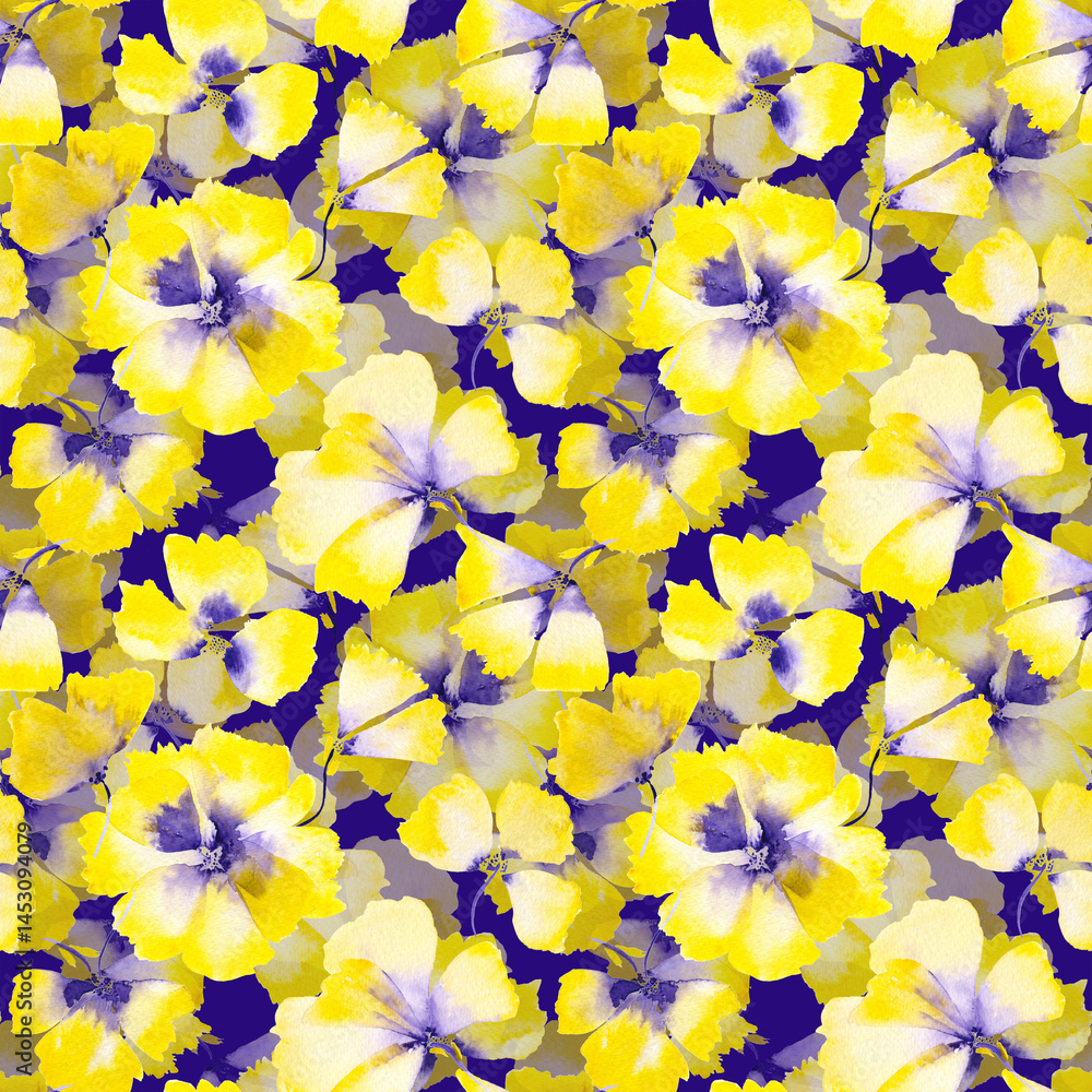 Obraz na plátně Watercolor Yellow and Purple Bright Floral Art, Floral Design, Sunny Flower Pat