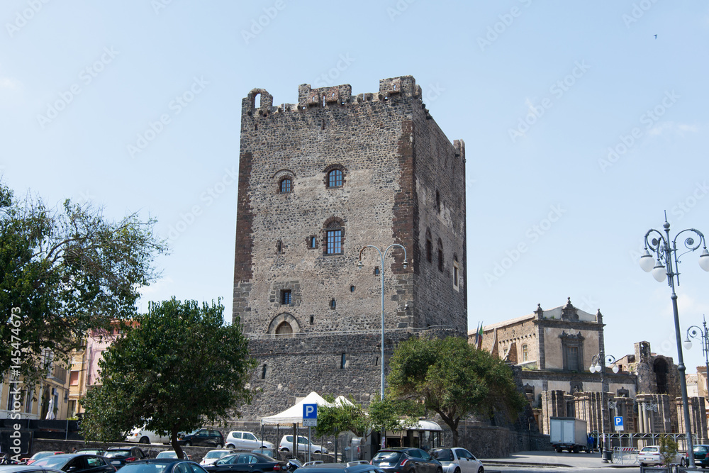 Obraz na plátně The norman castle in Adrano, Sicily. Made in lava stones