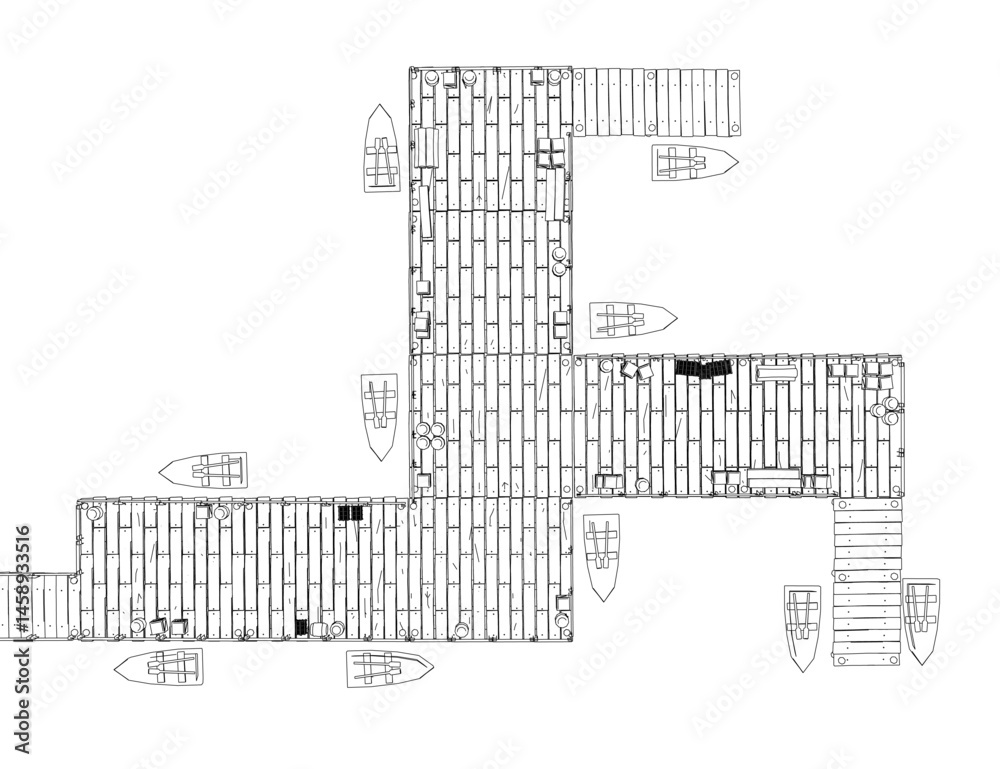 Obraz na plátně A drawing of a long wooden docks with a boat in the middle
