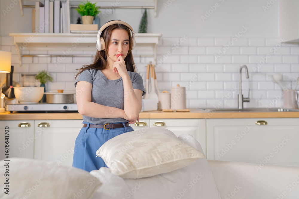 Obraz na plátně Housewife home working house keeping concept,asian female in casual cloth Woman