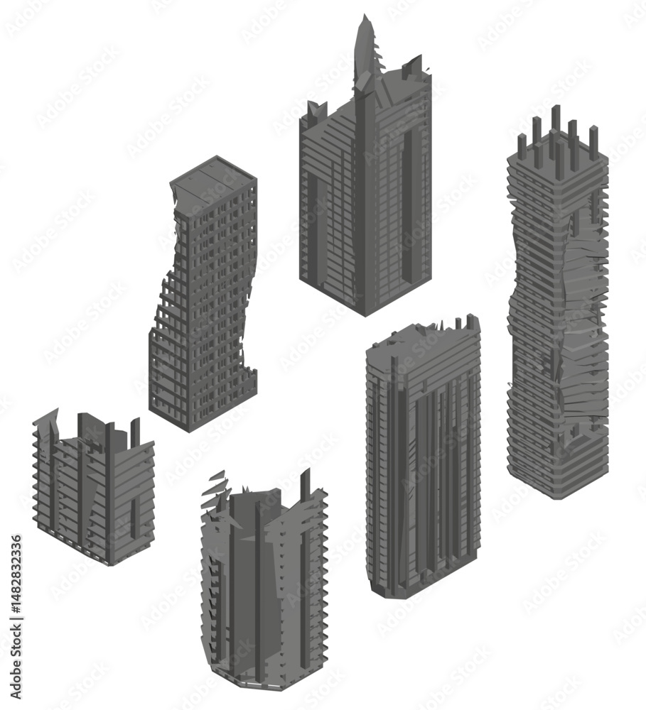 Obraz na plátně A collection of six tall ruined buildings in a cityscape
