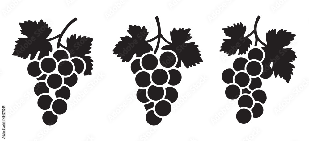 Obraz na plátně Black grape cluster silhouette with leaves in a minimalist vector style, simple