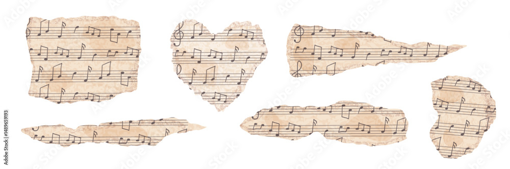 Obraz na plátně Set of ripped vintage music paper in beige color