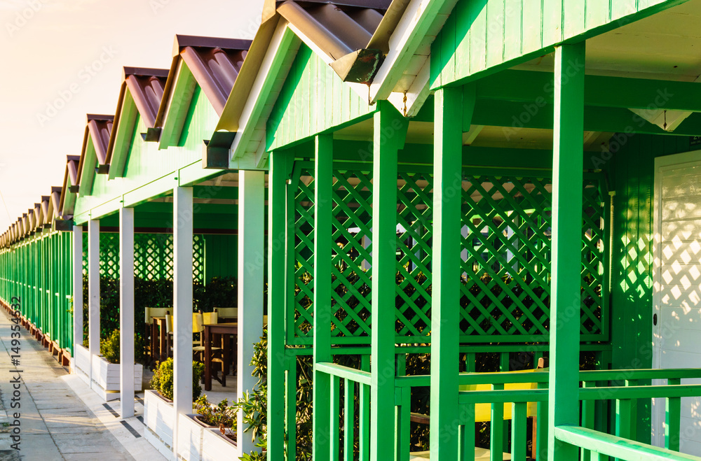 Obraz na plátně Forte dei Marmi beach with cabins at sunset, Versilia, Tuscany,Italy