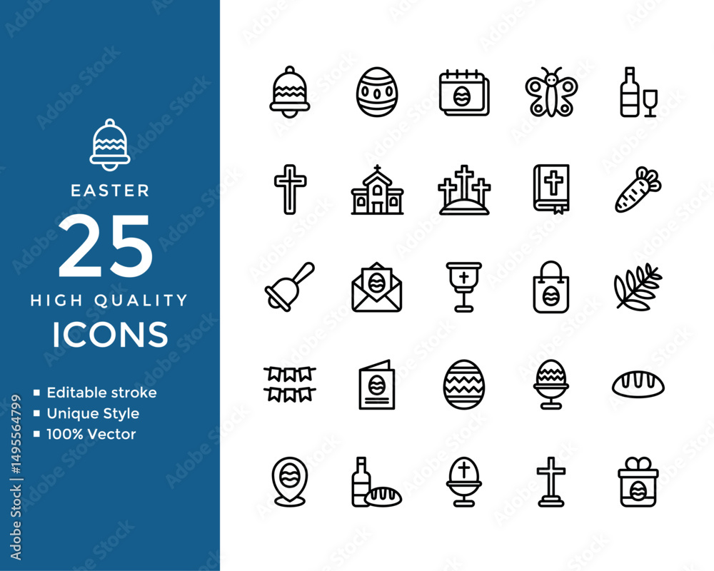Obraz na plátně Easter Line Icons Set – Christian, Church, Religion, Decorations & Easter Symbol