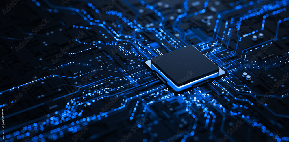 Obraz na plátně Processor chip on circuit board with copy space for design